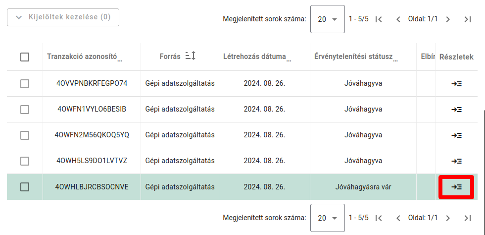 - Görgessen le az oldal alsó felére és válassza ki a jóváhagyásra váró adatszolgáltatást.